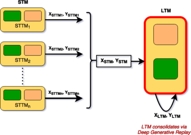 We derive inspiration from human memory to develop an architecture capable of learning continuously from sequentially incoming tasks, while averting catastrophic forgetting. We present: (i) a dual memory architecture emulating the complementary learning systems (hippocampus and the neocortex) in the human brain, (ii) memory consolidation via generative replay of past experiences, and (iii) improved performance retention on challenging tasks even for low capacity models. Our architecture displays many characteristics of the mammalian memory and provides insights on the connection between sleep and learning.